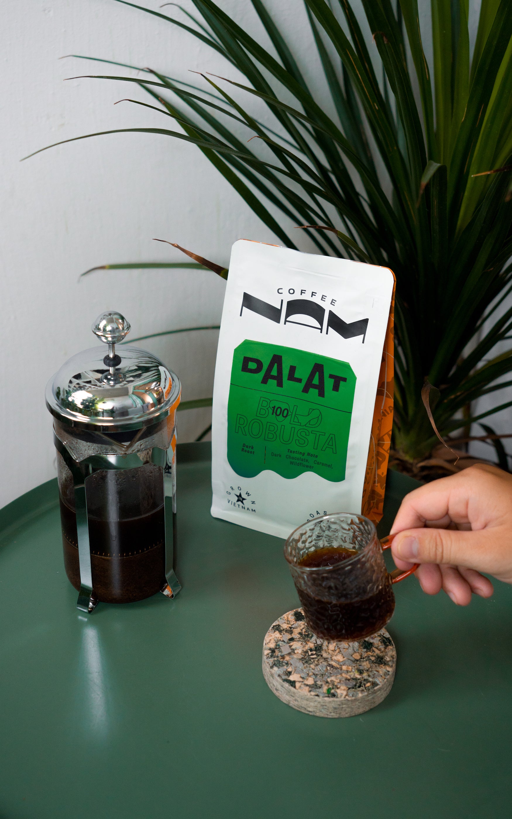 Our boldest bag of coffee! The 100% Robusta offers the classic and nostalgic taste of Vietnamese coffee. With notes of dark chocolate, caramel, and nutty, the Da Lat showcases the richness of Vietnam’s highlands. Try it in a traditional phin brew with some condensed milk for the full experience.
