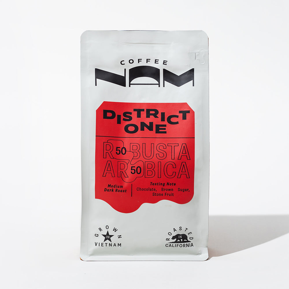 Named after District One in Saigon, this expression is the ultimate balanced coffee. A modern and smooth brew inspired by Saigon’s bustling streets of kiosks, plastic stools, and carts, District One is an equal-parts Arabica and Robusta blend.